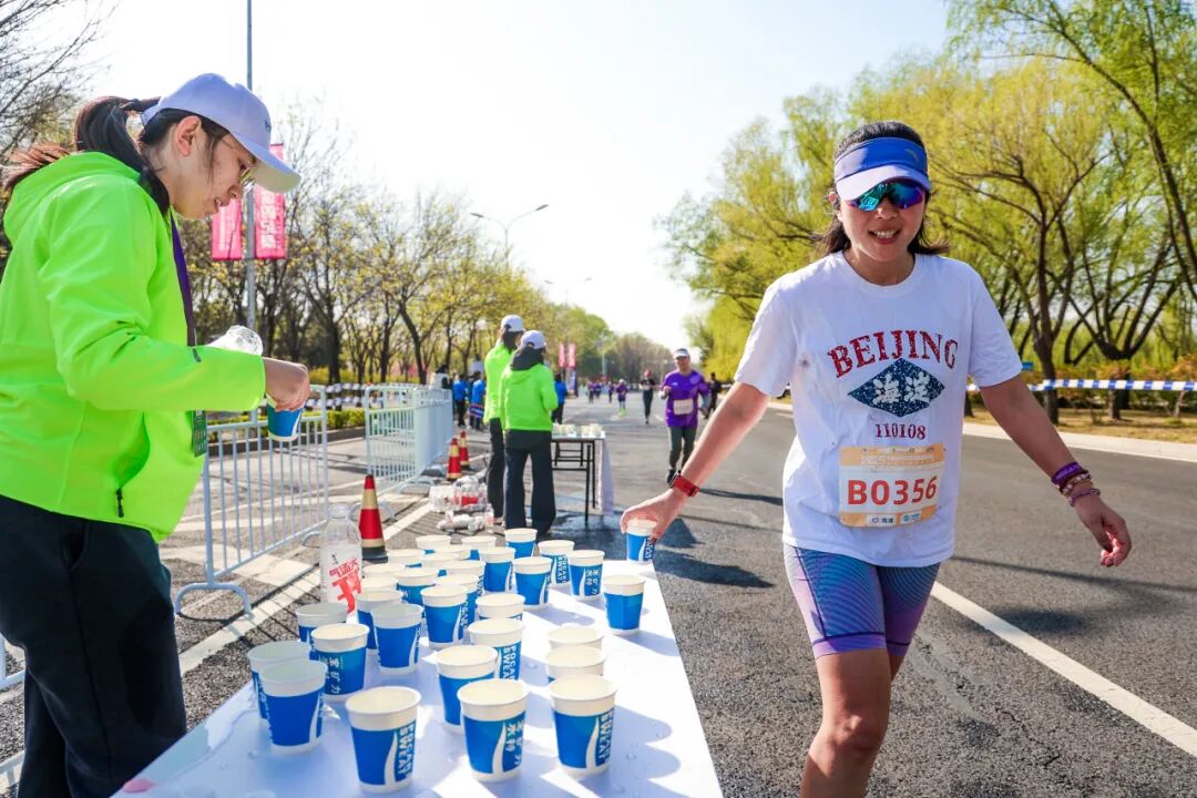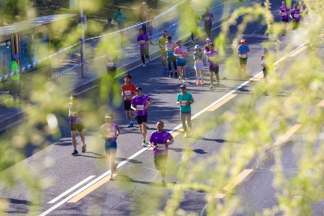 赛道向西,渐入佳境。颐和园的飞檐在晨光中勾勒出轮廓,昆明湖东路一侧是古园的朱墙黛瓦,一侧是昆玉河的粼粼波光。百年历史静静伫立,为每一位奔跑者列队致意。